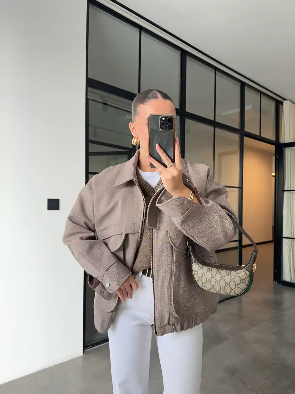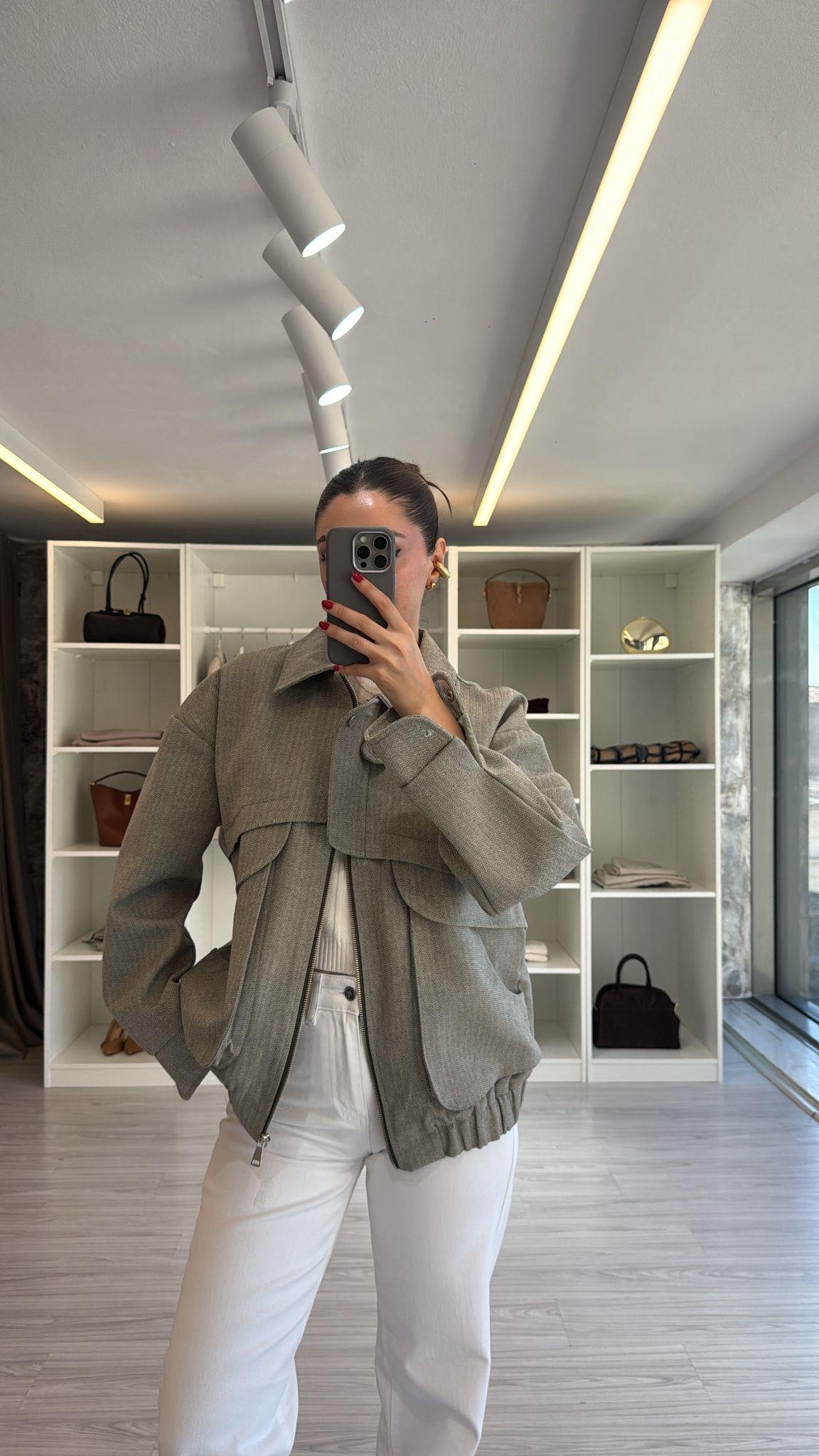 جاكيت بومبر كبير الحجم بجيوب واسعة