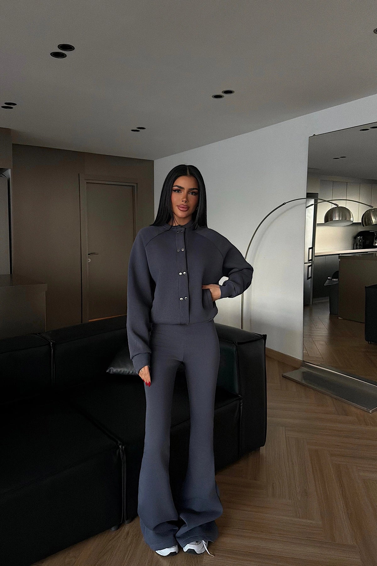 طقم بدلة رياضية بيرديتا باللون الرمادي بوردو