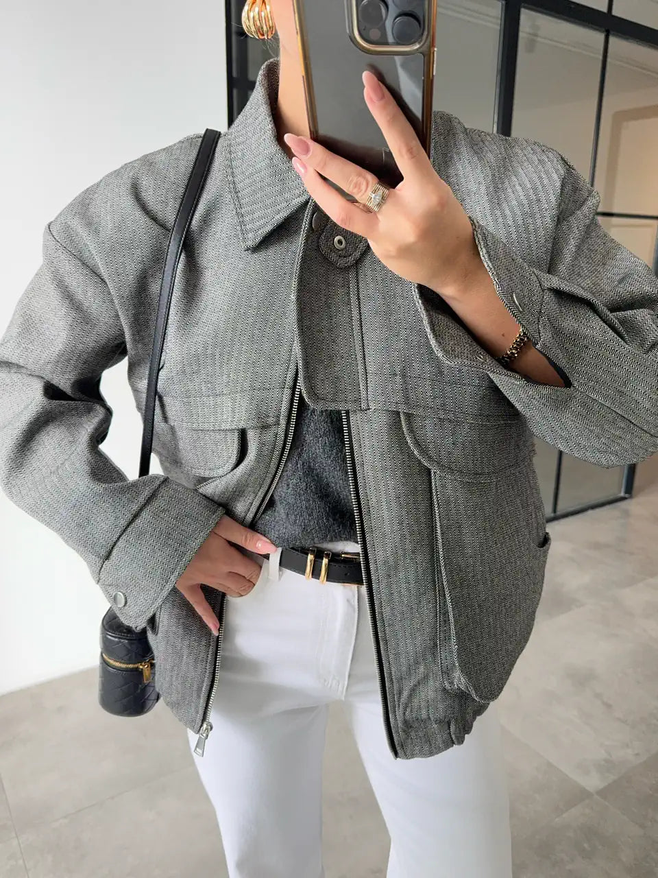 جاكيت بومبر كبير الحجم بجيوب واسعة