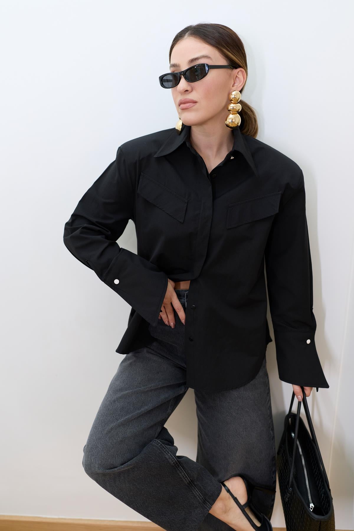 BUTTON-UP WITH PADDED SHOULDER SHIRT