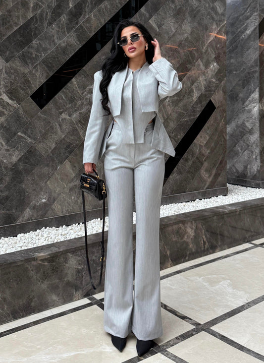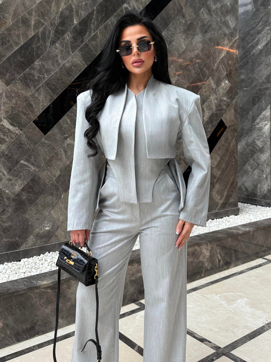 • يحتوي الجاكيت على وسادات كتف لمظهر أكثر تحديدًا وأناقة
