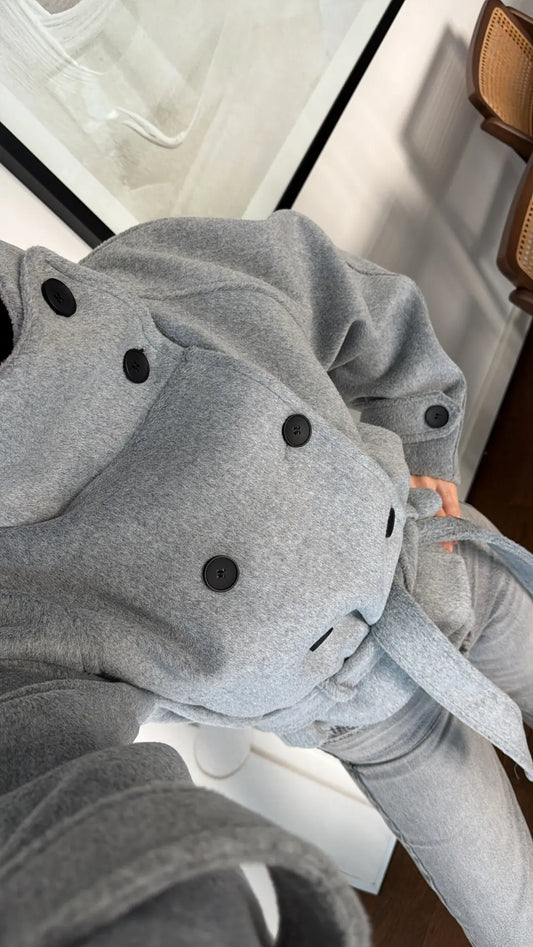 Grey Arnica Stand-Up Collar Short Cashmere Coat