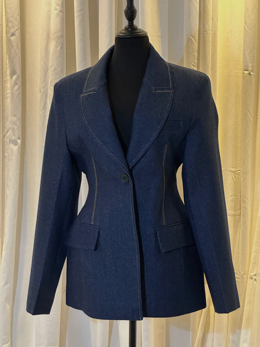 PREMIUM WAISTED DENIM BLAZER JACKET ARVERNA