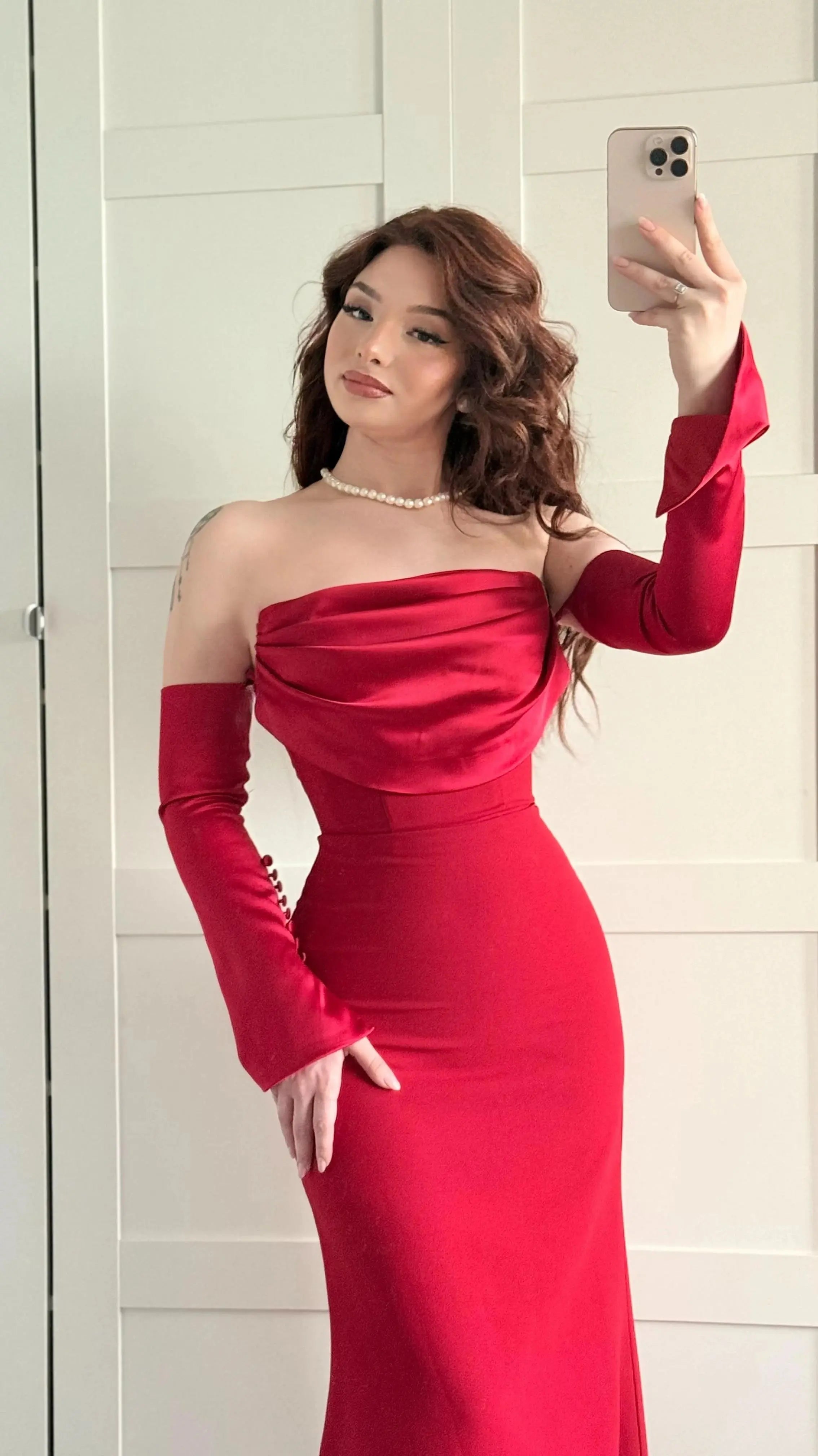 Alya Satin Black Sleeve Evening Dress ARVERNA