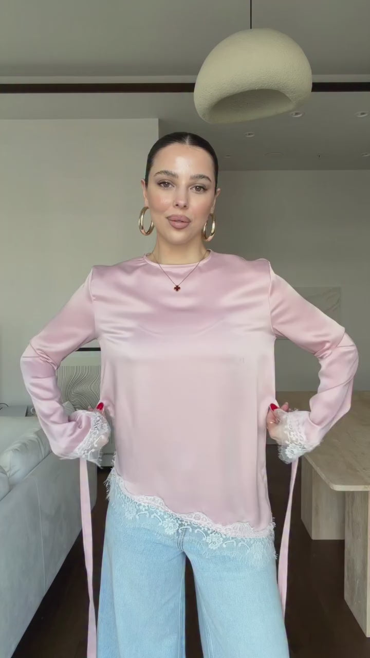 ASYMMETRICALLY DETAILED SATIN BLOUSE