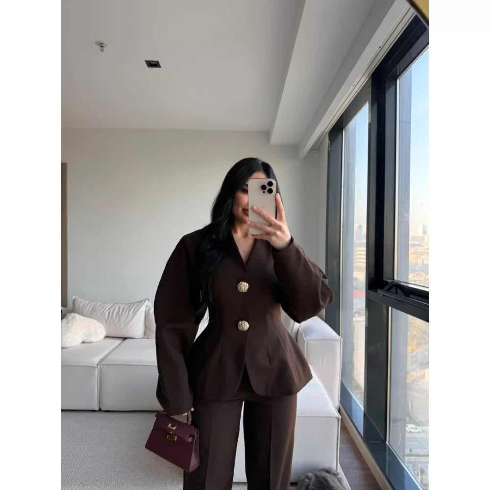 Black Balloon Sleeve Gold Buttoned Suit