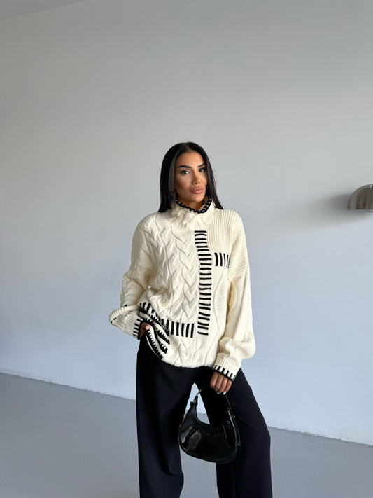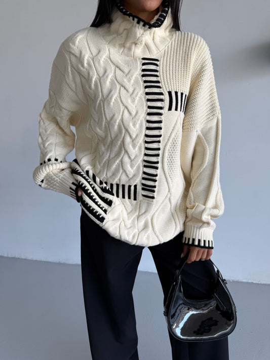 Crew Neck Long Sleeve Black Striped Sweater